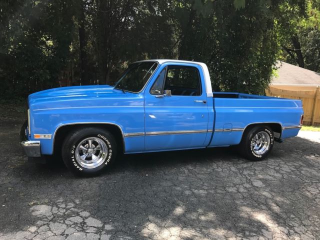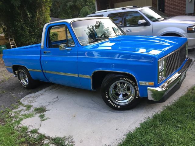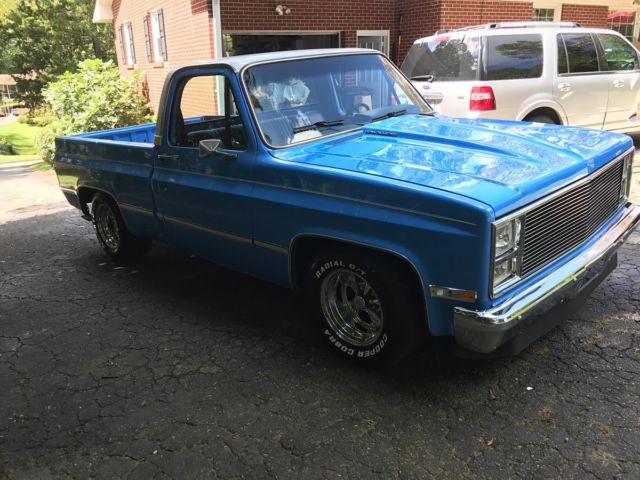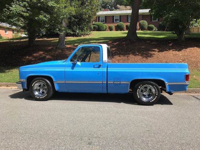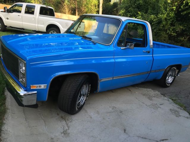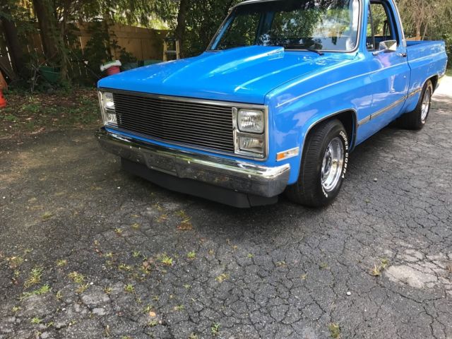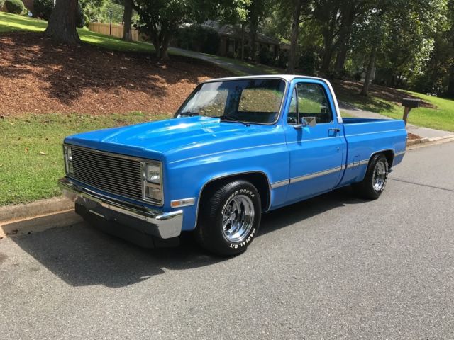 1985 Custom C 10 with custom paint, 350 crate engine with over sized cam around 4000,00 miles since rebuild, 350 turbo transmission, 670 cfm dual pumper carburetor, edelbrock performer intake, headers, march performance serpentine system includes; new billet water pump, power steering pump, alternator, and air conditioner air conditioner needs hoses ran and Freon added, but is brand new), dual exhaust with flow master mufflers ( sounds awesome) billet grill, cowl induction hood, recent front bumper, shaved rear bumper, all LED lights, blue LED lights in dash, new carpet, recent door panels with billet insert, dash pad with billet insert, leather seat cover with stripes that matches exterior paint color, deep dish Craiger mags, cooper tires. I sure i missed something, but truck is awesome and draws attenion were ever i go, be it a car and truck show, or just to the gas station. Paint is an 8 out of 10. Motor and trans perform awesome. truck is very solid.Vin #2GCCC14H7F1176406