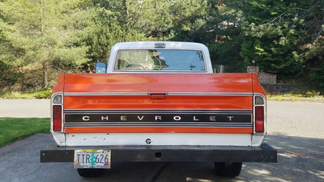 70 c10. 75 bed. Relocated fuel cell in bed. 396 bb. Air bags on rear. Disc brakes up front. Rebuilt transmission. Rebuilt rear end.Tilt column. Power steering. No a.c.. Great heat! No rust issues |