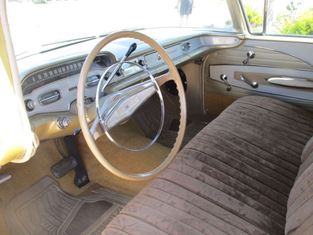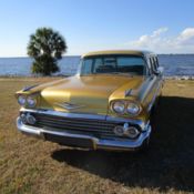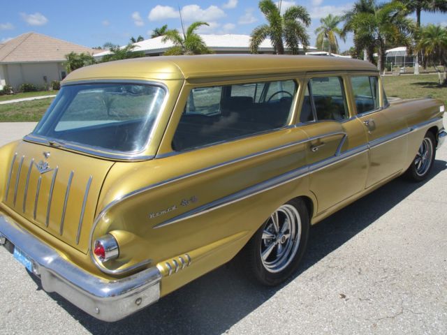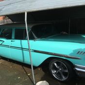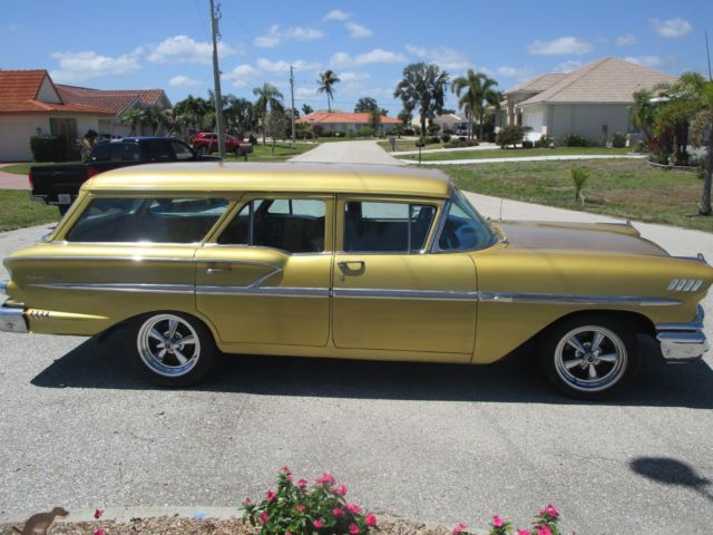 A REAL 1958 CHEVY NOMAD WAGON, 348 Tri-Power & had BEEN IN STORAGE SINCE 1985 and brought back out in the last year. With less than 100 ROAD MILES SINCE REBUILD OF ALL MECHANICAL COMPONENTS LAST YEAR- CONVERTED TO FRONT DISC BRAKES WITH DUAL MASTER AND BOOSTER- NEW AUTO TRANS (350 Turbo 3 speed automatic) - ENGINE IS COMPLETELY REBUILT w/ 348 TRI POWER- HD SWAY BAR- DUAL EXHAUST- VERY NICE DRIVER .. Since the rebuild, the engine has been ran off the center main carb. The other two carbs if you want to run the tri-power will just need connected. I like running the single carb as I don't run it hard and it runs amazing. You don't even need to touch the gas to start it.. Just turn the key and she purrs... All doors, trunk door, engine and trunk windows were removed when it was painted so it looks nice all around.. Unreal it was painted in the 90's and still looks this good. the interior is in super condition as well as the carpet is new.. Door panels look great as well as the Chevrolet emblem strips on the carpet by the doors. Previous owner purchased this Nomad in 1985 and did the restoration and he owned for 33 more years. That owner said it was original miles around 49000 when he bought it in 1985 and says no doubt that the 57924 miles it shows now is actual miles. I cant prove it but from the honesty of this older gentleman I have no doubt it's real miles... New tires and rims with locking lug nut's She has Power steering and when sitting a stop light it purrs and idles like a smooth new car.. It is a HOT RIDE !! Comes with the 4 original rims and the jack components are in the trunk as well as the original jack sticker still attached to trunk lid. Carbs still have original date coded correct tags. When the engine was rebuilt a new starter was added and the original was saved and is still with the car..