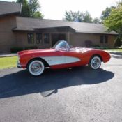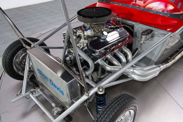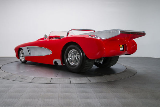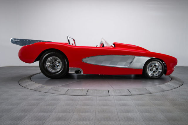 This unique Corvette, finished in 2012 by McCabe Racing, was constructed under the direct guidance of NHRA chassis guru Don Davis. The idea was to create a one-off street car that could easily double as a bracket racer, and, after four years of hard work, that goal was fully realized. As you might expect, the car's flip-top body is made of quality composite. And that lightweight fuselage is highlighted in bright red 2-stage that's stamped with crisp silver coves which... wrap old school leafing around a ghosted checker motif. Under the hatch, 454 cubic inches of big block Chevy are spry at the strip and well-mannered on the road. Behind that mill, a tough Turbo-Hydramatic 400 3-speed benefits from a remote cooler that's mated to a breezy Perma-Cool fan. That transmission twists a 9-inch Strange axle that spins in a fabricated, back-braced housing. That drivetrain hangs in a choice Don Davis chassis, which is pushed by a custom 4-link that's complete with adjustable coil-overs and an adjustable panhard bar. That clip is led by Flaming River rack-and-pinion steering, which spans Strange hubs that are finished with polished control arms and a second set of coil-overs. At the corners, Strange calipers squeeze slotted discs. And polished WELD alloys spin 125R15 Firestone F-560s in front of 33x19.5-15 Mickey Thompson Sportsman Pros. Piloting this flip-top is relatively easy thanks to a snug, all-business cockpit that's lined in neutral leather. The car's driver and one lucky passenger perch on simple buckets that feature body-matched Crow Enterprizes harnesses. In front of those seats, a minimalist dash hangs vital Auto Meter telemetry above a beefy B&M shifter. And in front of the driver, a purposeful steering wheel laps metal foot pedals. Plenty quick and plenty streetable, this pristine Corvette is an excellent combination of awesome Pro Street performance and timeless hot rod aesthetics. Call, click or visit for more information!