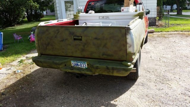 it was going to be a hunting truck but i found something different half is painted camo and other is red i ran out of paint and then started to get cold out. i was driven in a very heavy snow fall and it started to back fire now it does need a tune up back fires at higher speeds driver seat broke so it lays back easy fix and the bearings in the steering column is bad i do have an extra steering column that can be used for parts the 4 wheel drive works great ac needs recharge and door panel arm rests are gone it will be for pick up only or you pay for shipping