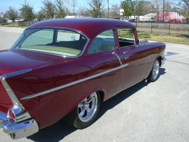 | 1957 CHEVY 150 290 HP. 350 CRATE MOTOR. TREMEC 5 SPEED TRANS. T. C. I. ENGINEERING UPPER AND LOWER CONTROL ARMS. DRILLED AND SLOTTED 11 INCH ROTORS. WITH REAR DRUM BRAKES. POWER STEERING. VINTAGE AIR. CUSTOM SOUND SECRET AUDIO. 7 INCH AMERICAN WHEELS. This 57 Chevy is a great looking and driving car. For more info call Bobby 281 255 4212. |