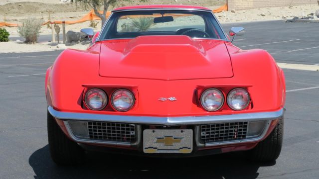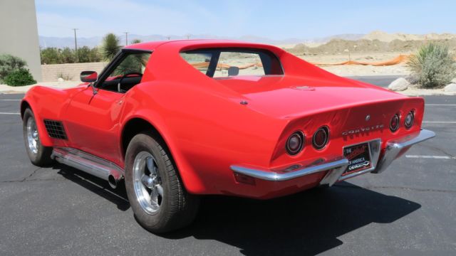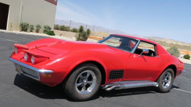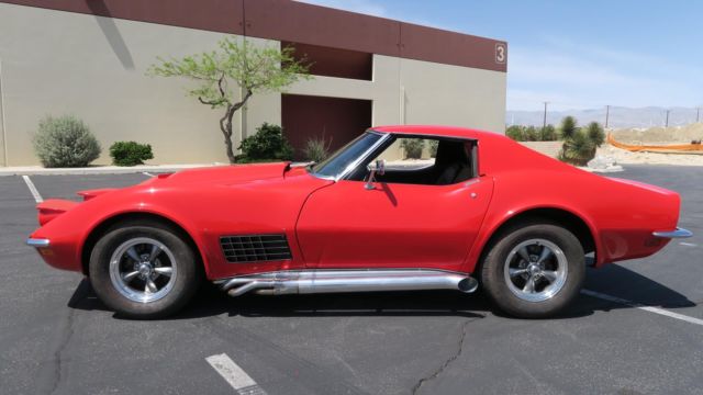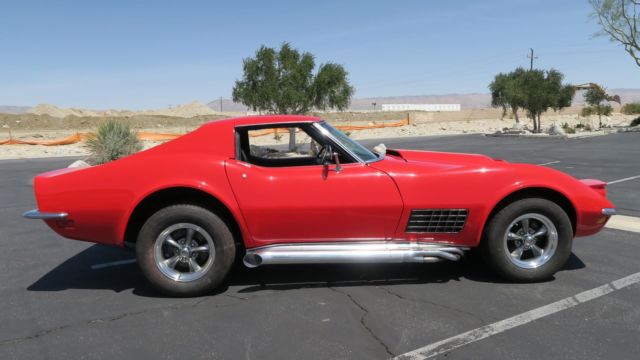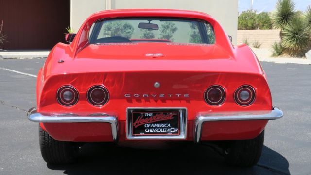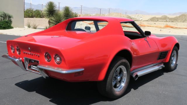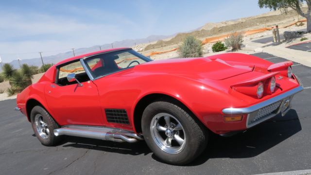 1972 Chevrolet Corvette 350 4 Speed! Strong 350 engine with 4 speed manual transmission, both in great shape. Rochester carburetor. New aluminum radiator. All new heater and cooling hoses. Power steering! Headers with Dougs Ceramic coated side pipes. Brand New Viper Red paint job, clean body and floors. Nice chrome and glass. New windshield. All new interior! Seats just reupholstered, new carpet front and back. New door panels. All new brakes, new master cylinder and all 4 calipers. New Rev... aluminum wheels, good tires. 245/60/15. All gauges, wipers, heater and lights work. No leaks, smoke or noises. Runs and drives excellent! Dash vin plate matches clean title. Oversea buyers welcome! stock # 0888. Call or email today!