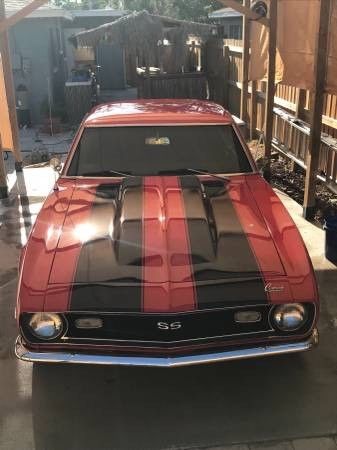 1968 CAMARO SS 350, Turbo three speed automatic transmission, power steering, power brakes, brand new vintage air conditioner with defrost and heat. Edelbrock 4 barrel carb. Updated wiring kit, retro sound Bluetooth radio, chrome american torque thrust wheels five spoke staggered 15" with wheel locks. New air filter, new distributor, spark plugs, cables and loom kit. Mahogany steering wheel. Ceramic headers. Carburetor just rebuilt. New lower control arms, new front and rear shocks. New dark tint on all windows. New floor mats. New carpet plus trunk mat. New red top Optima battery. Lots of originals still in the car in great working condition. Laser straight body with lots of chrome. Comes with nice car cover. Runs and drives nice with clean FL title in hand. If you have any questions just ask. Thanks!