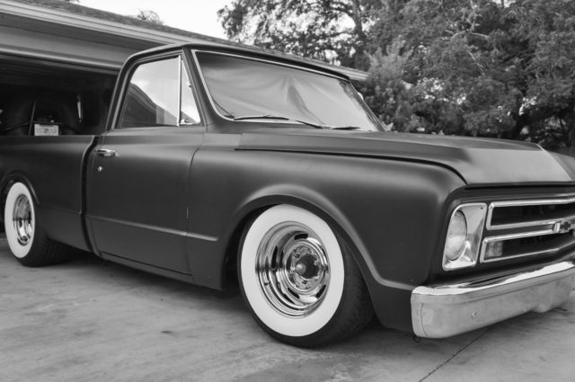 I bought this truck about four years ago and it's been sitting under cover, on rollers the whole time. There are zero miles on all the new parts I bought for it. I bought new chrome rally wheels, wide white walls, disk brakes, Wilwood proportioning valve, 10" booster, CPP C notch, drop spindles, 73-87 ball joints,TRE's, CPP billet tie rod adjusters, bearings, seals, aluminum radiator, door hinges, gas tank, complete new vent windows, put the rear on bags and reupholstered the bench seat in black with 1.5" pleats. The truck is in overall good shape but needs some work. Whoever did the paint before I got it didn't know shit about panel alignment, so the hood, doors, and clip need some work but they all close tight. There is some filler on the front part of the hood that just showed itself within the last year in the form of a hairline crack about 3" long, drip rails have some rust, the bed has some holes and needs wheel houses, the brakes need completely bled, and it needs a steering pump. The wiring is rough and needs cleaned up, the rockers and doors are solid. The truck runs but needs a power steering pump and brakes bled to be driven. Parts included that are not shown: Complete OEM AC system out of my 71, dynamat and weather stripping Clean title in hand. If you have any questions: 941/893/7517 1967 C10 SWB Complete truck |