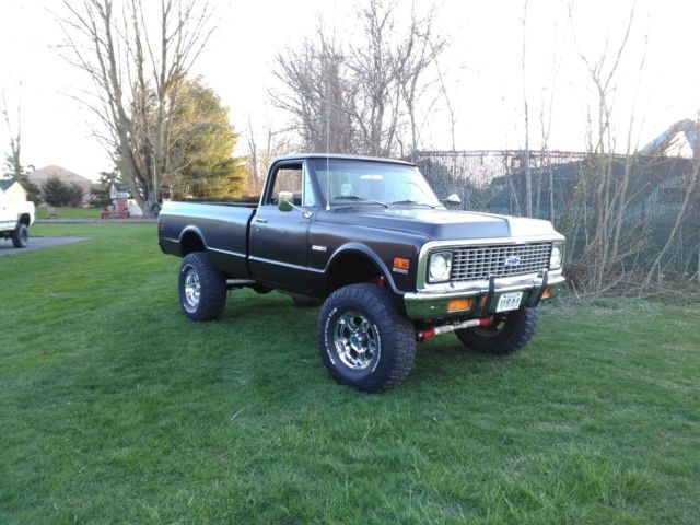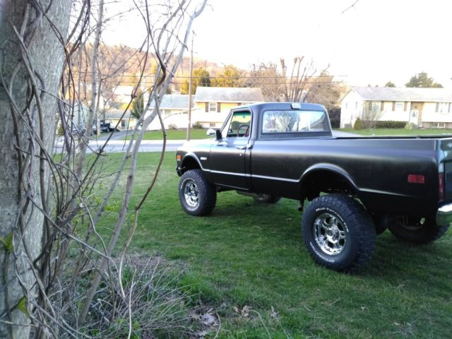 1971 chevy k 20 3/4 ton 4x4 truck. from what I can tell all the lights and all the gauges work as they should runs and drives nice, has a thumper cam and Gear Drive. the body seems to be rust free, comes with a new 450.00 grill kit because the one that is on it is scratched. the horn is on a button on the left side of the dash the one heat vent selector doesn't work but the heater and defroster both have air coming out when the blower is on. it is a Cheyenne 20 CST it has a 350 engine automatic transmission with the Gear Drive transfer case np205. 37 12.50 17s BFGoodrich tires, it has a black and brown interior, it also has an 200psi air ride system on it that can raise and lower the truck about 8 in up and down. When the airbags are all the way down the vehicle is 2 inches higher than stock the rest of the Lift comes from the bags. local pickup only PA title in my name, cash no trades for sale Clist locally, and can end sale at any time, any questions just ask thanks.