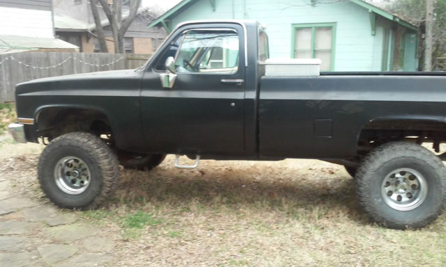 | I always wanted one of these trucks and this is a project truck I purchased in 2008 from a sixteen year old who had his Grandma buy it on Ebay and it shipped out of Nebraska to Texas. I then went overseas to work for what turned out to be almost three years. When I got it the interior had already been replaced to almost new. New dash. new seat. new panels. After coming home and with deep pockets I then added a lot of professionally installed mechanical components. Holley 670 carb. Holley Street Dominator intake. Headman headers. Series 60 Flow Masters. 4. 56 front and rear gears. brand new 35" Cooper tires. Fast forward to 2015 and I now work two miles from home and this truck has sat in my back yard the last few years seeing very little drive time. After renewed interest these last few weeks. I recently noticed the carburetor choke has been sticking at crank up and the speedometer and coolant temp. gauges have quit working. I will probably regret selling this truck. but my Father recently passed and after inheriting two of his vehicles my yard is beginning to look like a used lot. I have taken many pictures and more can be added upon request. The picture with the penny is the hood. |