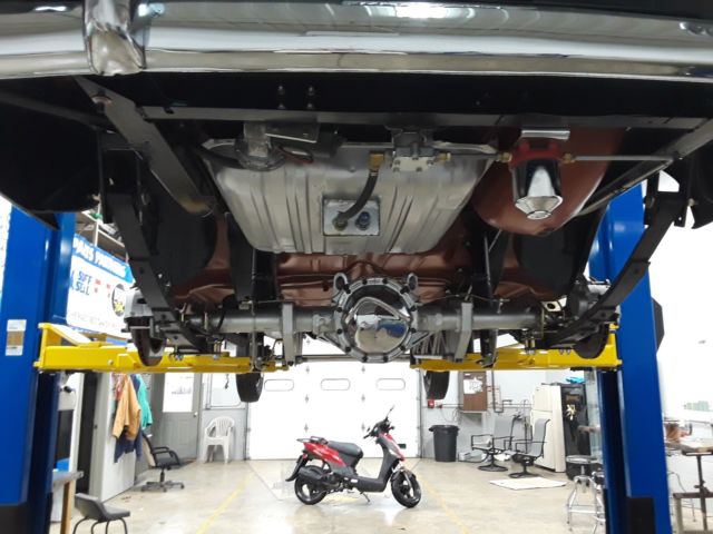 1955 Chevrolet Bel Air Gasser NICKY front end, disc brakes all around with booster vacuum pump,. Chrome Moly Ladder bars, 8 point roll cage, new braking system with Hurst line Loc. M 21 Muncie completely rebuilt, 11” Clutch, Vintage wedge NHRA cast steel blow shield, 12 bolt posi rear end., limited slip.410 gears. Original chrome and interior. Complete base coat clear with BMW Black paint code 086