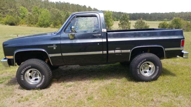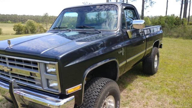 1984 Chevrolet Silverado Short Bed 4WD, All Stock, mileage is 106125 on the original engine. The engine is at the point were it needs to be rebuilt or replaced. The a/c is all there does not blow cold air, the 4wd is in working order. Truck is loaded out with power windows, locks, clock, temp, alt gauges, dual gas tanks, cruise control, tilt wheel. I bought the truck in 2008 in North Carolina repainted the truck a metallic black, put a 4" SuperLift on the truck with 35x12.50x15 and 10" slotted mags. The truck was driven as a daily driver up until 2013, since then only here or there. Paint has a few chips in it, three cracks in the dash over the radio speakers, interior all original. I just replaced the battery, starter, all belts, cap, rotor, module, wires, plugs, shocks, front calipers & pads. This truck is clean, straight & cab is air tight never been in the mud. I have the original rims and back glass for the truck. Truck is being SOLD AS-IS and I reserve the right to end the auction.Serious Bidders Only.On Apr-28-18 at 05:23:52 PDT, seller added the following information: