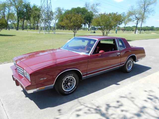 7 DAY AUCTION ENDING SUNDAY MAY 6;Outstanding, unrestored, all original 1984 Chevy Monte Carlo. Garage Kept by the same owner until 2016. 84K Actual Miles.5.0 V8, 4 barrel carburetor. Automatic Transmission. Cold Air Conditioning (converted to 134A in 2009) Tilt Wheel, Cruise Control, AM-FM Stereo, Factory Road Wheels w/ newer matching BFGoodrich TA tires. Everything on the car functions properly - including the clock. Always starts right up, choke engages. Tracks straight down the highway with no weird shakes, shimmies or pulling. No Squeaks or rattles. Interior condition is amazing. Dash has absolutely no cracks. No cracks on the armrests, crisp surfaces on display panel, the door panels are not scratched or oxidized. Rear package tray is not faded or cracked, excellent headliner. No mysterious stains or odors. Weatherstripping is soft and supple. No fancy blue tooth or entertainment system, but it is actually relaxing to watch the clock's second hand ticking at red lights. Exterior shows amazingly well. Original paint with the original factory painted pinstripes. All of the body panels match up correctly. The clear coat on the top surfaces have started to haze, also known as "lacquer crack", too subtle tophotograph. This was a common issue on vehicles from this generation. The general consensus seems to be "leave it original!" When the car was less than a year old, she caught the edge of the garage with the driver's mirror. It was repaired at the dealership, paint was blended around the newmirror above the pinstripe- perfect color match, but in the right light you can see sanding marks if you know where to look. Numerous nicksand chips throughout that shouldbe expected on an original car of this age. The glass, including the windshield is all the original LOF; no wiper scratches or chips in the windshield - no vertical scratches on the side windows. The hood ornament appears to be from a Malibu, I have the correct one ordered; the rectangular screw cover on the driver's door panel is cracked- I am going to try to locate one this week. Square stainless trim pieceon the lower rear bumper driver side is peeling.Clean CARFAX Vehicle History Report. Phone calls always preferred to emails, if you have any questions please feel free to call me (214)770-0437 I do not have a "buy it now" price and would prefer to let the auction play out. Fly in- Drive Home, check out Southwest.com for reasonable fares to Dallas Love Field, their Hub.Bidders with a feedback score of less than 5 must contact me directly prior to bidding.