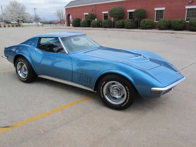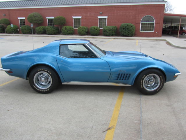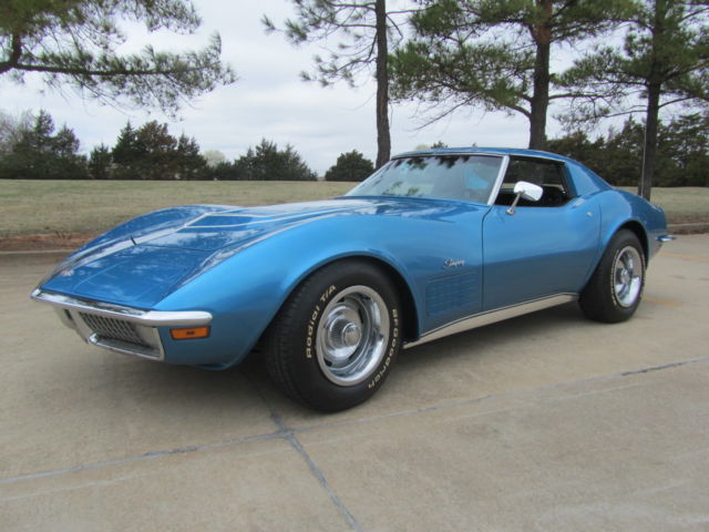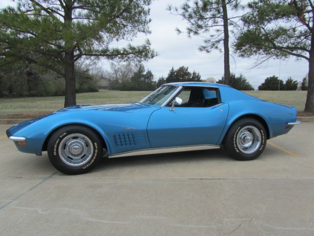 THIS IS A 1970 CHEVROLET CORVETTE #'S MATCHING BEAUTIFUL VEHICLE HERE IS A LIST OF THE FACTORY OPTIONS ON THE CORVETTE LT1 350/370 HP # V0128CTU 4 SPEED MANUAL TINTED GLASS, POSITRACTION AXLE, G81 REAR AXLE, TITL-TELESCOPIC STEERING COLUMN, AM-FM RADIO, BRIDEHAMPTON BLUE(979), BLACK VINYL SEATS(400), CUSTOM SHOULDER BELTS, 4 WHEEL DISC BRAKES,T-Tops with all other Standard Equipment...Call Jerry 4 ? 405 659 8434 deposit is non-refundable WE ATTACHED WINDOW STICKER FOR YOUR CONVIENCE |