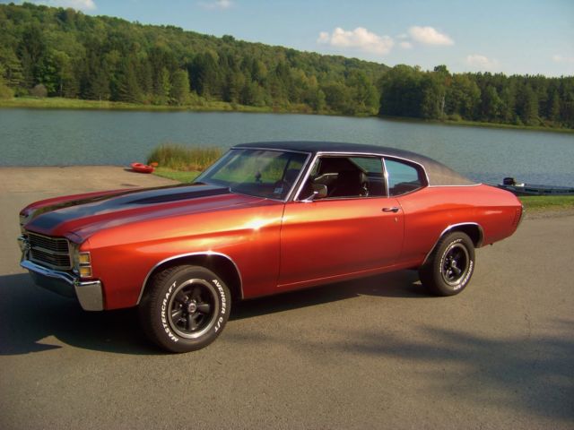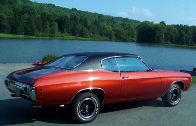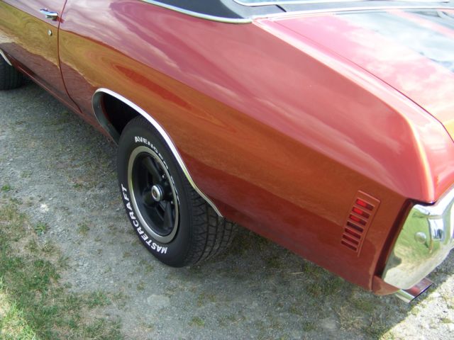 | 1971 Chevrolet Chevelle SS. Original surviving big block Chevelle sold new at Gelhaus & Brost Inc. on 4/12/1971. 100% numbers matching born with driveline throughout - it has never been removed! Placer Gold exterior. Sandlewood interior. M20 4 speed car. This was the color combination used for the sales brochure in 1971. 100% original sheet metal which is very rust free. Most of the original undercoat is still intact and only surface rust where it is missing. No accidents or body damage ever. An older repaint which is showing its age but very presentable. The car was not jammed. therefore. has its original paint on inner fenders. door jams. and under deck lid. Excellent original interior with day two Hurst shifter and stereo head unit. Nothing cut or altered including the wire harness. Original owner saved the Muncie shifter and radio which could be re-installed. All gauges. turn signals. radio. heater. interior/exterior lights. radio. etc. work perfectly with the exception of the clock. All original and rare "clear" glass including windshield is in excellent condition. The most impressive aspect of this car is how it starts. runs. drives. and rides - like it did day one! Documentation includes Protect-O-Plate. owners protection plan. purchase agreement. owners manual. sales brochure. and two extremely nice build sheets. This 1971 Chevrolet Chevelle SS is unmolested. unmodified. with only maintenance items replaced over the years. Please contact 720-320-1359 with any questions. I reserve the right to end the auction early. Thank you. |