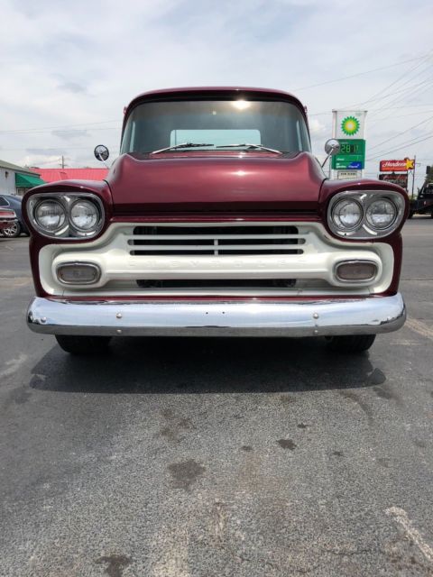 1959 Chevy Pickup Fleetside Engine- 327 SBC, Edelbrock carb, Double hump headsTransmission- 3-speed in the floorFront end- Original straight axle w/o power steeringWheels- Cragar Smothie styleAM/FM Radio The truck is very solid an came outta California runs an drives good. It has what looks to be original floor bedding. Truck has recently been painted theres a few scratches inside the bed.It's hard to find a 50s chevy truck in this condition. We can arrange shipping for you, call or text for a quote. The truck will be sold at NO RESERVE, please be serious with your bids. Non paying bidders will be reported. 606-416-0904(Roman)