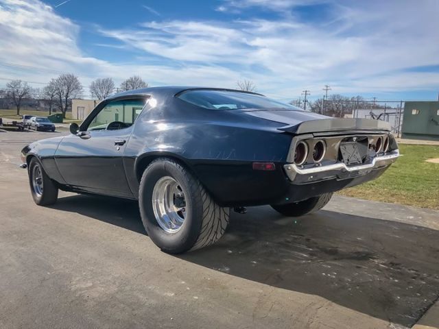 1971 Camaro RS from Southern California. The body is solid with rust free doors, fenders, trunk lid and what look to be original quarters. Correct RS split bumper front end including Z/28 style air dam is up front. The hood is a 5" fiberglass cowl induction type and a '70.5 model year short spoiler rounds out the car in back.Paint is older driver quality black with matte charcoal colored stripes and does show some age, but there are no rust issues on the body. Floors are mostly original and are solid, trunk floor was cut out and replaced with a fabricated sheet metal floor to accommodate the fuel cell and relocated battery. Rear leaf springs were moved inboard and mini wheel tubs were installed to make room for the bigger wheel and tire combo. Weld in frame connectors were installed along with a 6-point roll bar with harness bar. Powering this beast is a strong running 498 cubic inch big block Chevy with all good quality parts including forged internals, Edelbrock Performer RPM Oval port aluminum heads, Edelbrock Air Gap intake, Hooker Competition long tube headers. The electronic ignition system is all MSD including control box, coil and billet distributor. The fuel system is made up of a trunk mounted fuel cell, Holley electric fuel pump, Quick Fuel adjustable fuel pressure regulator and a Quick Fuel 750 CFM double pumper carb. A built reverse manual valve-body TH400 with stall converter backs up the engine and is shifted with a B&M ratchet shifter. Rear end is a Ford 9" rear with locker and unknown gear-set. It does have decent road manners, so I assume it is around 3.70 - 4.10 range. The car is a mean street car or could be a dedicated race car, it does have a clean and clear California title and is street legal as it sits. Clean and complete early 2nd generation Camaros are getting harder to find. This one is full of high dollar parts and is very competitivelypriced! We encourage personal and/or third party inspections.Please feel free to call me with any questions so you have a full understanding of what you are purchasing. Car is for sale locally and I do reserve the right to cancel the auction early for local sale.Payment made by cashier's check, funds must clear before pickup or delivery will take place. $1000.00 NON-REFUNDABLE deposit required 48 hours after close of auction. PLEASE make sure you have funds available and are ready to purchase before you make a bid! If you have less than 5 positive feedback points, please call beforebidding. John |