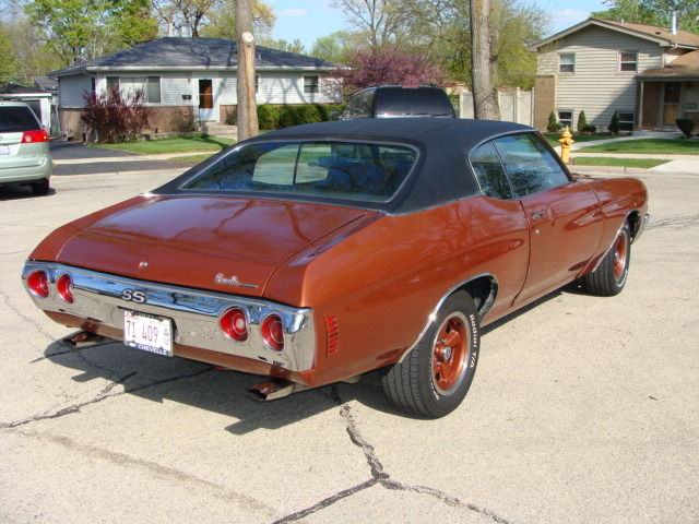 Up For Sale is my 1971 Chevelle SS with a Big Block 502 GM Crate Engine. With Ad Ons this beast has 535HP and 600 lbs of Torque! New Manual Transmission with 6 Speed w/overdrive Richmond. Also have an extra 5 Speed Doug Nash Trans that comes with the car. Rebuilt 12 Bolt 343 Pos Rear End. Heavy Duty. Hooker Header with 3" Dual Exhaust. Be Cooled Radiator. MSD Box with Rev Eliminator. 1/2" Stainless Gas Lines with Return Line. Regulator Large Gas Filter and Well on Tank. Line Lock with Stainless Break Lines. Light Weight Drive Shaft with Heavy Duty Yoke & U-joints. March Pully System. Power Steering. Urethane Suspension and More! Bottom of the Car along with Engine Compartment & Interior Floors were Sandblasted and then Urethane Painted. Then the Floor and Bottom were Rhino Lined. Has new GM Bumpers and Cowl Induction Hood. Original SS Rimes Painted to Match Classic Copper Body Color with Black Vinyl Top. Basically this car has been completely redone with the exception of a nice Paint Job and Redone Front Bucket Seats. You do that and you have a Show Car on your hands that will beat anybody down the Race Track! With this Classic Copper Color your Guaranteed to be the only person to have a car like this and trust me. its a real Head Turner! Does the Quarter Mile in 11 seconds with Slicks and 12 Seconds with Street Tires. This is a TRUE SS that comes with the bill sheet. (laminated) from the dealer way back in 71 !This car has well over 35K into and comes with a pretty large folder with all the receipts proving how much was put into it. Also comes with an Appraisal way back in December of 2000 verifying a value of 23K at the time. 14 years ago and with no upgrades! > Big Block 502 GM Crate Engine> 535HP and 600 lbs of Torque!> New Manual 6 Speed Transmission w/overdrive Richmond> Additional 5 Speed Doug Nash Transmission that comes with the car > Rebuilt 12 Bolt 343 Pos Rear End. Heavy Duty> Hooker Header with 3" Dual Exhaust> Be Cooled Radiator> MSD Box with Rev Eliminator> 1/2" Stainless Gas Lines with Return Line> Regulator Large Gas Filter and Well on Tank> Line Lock with Stainless Break Lines> Light Weight Drive Shaft with Heavy Duty Yoke & U-joints> March Pully System> Power Steering> Urethane Suspension> Bottom Engine Compartment & Interior Floors Sandblasted & Urethane Painted> Floor and Bottom Rhino Lined> New GM Bumpers> Cowl Induction Hood> Original SS Rimes Painted to Match Classic Copper Body Color with Black Vinyl TopFor More Information or Specific Pictures Please Call or Text Greg at 954-684-2959 or email him at Grpesets@gmail. com . Asking for 33K - OBONote: This car is not in Mint Condition. The body is very solid with no rust that I can find but the car does need some minor work and a fresh new paint job. Also needs new front bucket seats reupholstered.