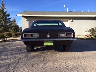 Straight solid. LA Built black plate V8 Camaro with factory A/C. Clean str8. appears to be all original 1968 Camaro. Floor boards and rockers all original with no rust. trunk super solid as well. interior all there. and wiring all works. ignition buzzer still works with key in ignition. nbsp; car starts right up and very straight and solid start. Engine and drive train appear to be all original. but not verified. v8/powerglide/10 bolt. has upgraded front suspension with new tubular upper and lower control arms and front disc brakes. rebuilt calipers. new bearings. and new brake hoses. Only selling because I came across equally solid 1969 Camaro which is what I wanted and cannot keep both. so now I need to sell this one. Hard to find solid. clean. almost complete LA built. black plate car. starts. runs and driveshere is what it needs to be completedalignment needs to be donepower steering needs to be hooked up (all parts there. just not hooked up)no headlinerno carpetno front door panels (rear panels there)A/C all appears to be there. not evacuated or charged. front grill needs to be all mounted. most of RS parts included. but not functionalRS hood release (has standard front grill hood latch)tires look new. but dry rottedAny questions. ask. I would not call this a turn key driver. but it is very close. Start. drive onto trailer. do a few tweaks and drive as is. or go crazy with itLow reserve. bid to win.