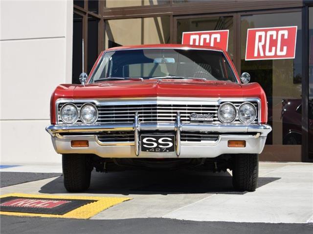 RCC Motors is pleased to offer this 1966 Chevrolet Impala SS 427. The car is a very well equipped show winning example and is a factory built SS bucket seat Impala. It is finished in its original color combination of Regal Red with Black vinyl bucket seats. Equipped with the 390hp engine, factory air-conditioning, power steering, power disc brakes, sports console full gauge package, Muncie 4 speed transmission, 12 Bolt Heavy Duty rear end with posi-traction, and more. The VIN,... 168376L221313breaks down as follows: 1= Chevrolet, 68= Impala Super Sport V8, 37= 2 Door Sport Coupe SS with Bucket Seats, 6= 1966, L= Los Angeles Manufacturing Plant, 221313= Production Number. It has been beautifully restored from top to bottom and was shown by both its previous owner and its current owner winning award every time. Please contact us with any questions or for additional information.