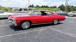 Offered for sale is this Very Nice TRUE 1967 Impala SS Fastback. She has what looks to be a mid 70s mild build 350. Eldebrock Performer Manifold and Eldebrock carburetor. She Runs and Drives down the road good. The Interior is in Excellent Condition. Beautiful Buckets,Console and Dash. Paint and body are nice and straight with a rust free undercarriage. Originally Butternut Yellow with a Black Vinyl top. Someone did a complete color change to Rally Red back in the... day. This car is a good Value and a Great driver for under $20,000.