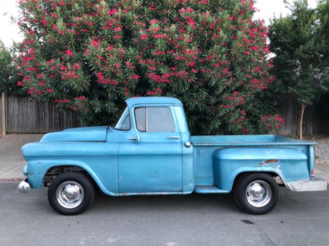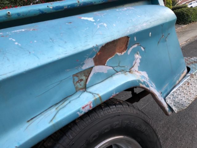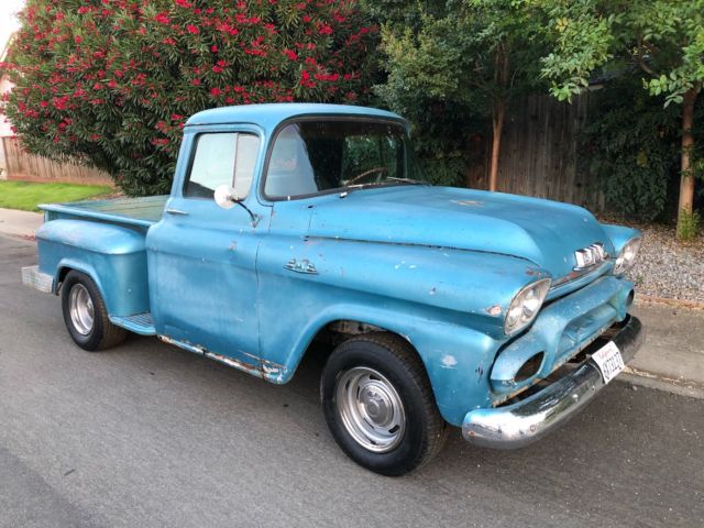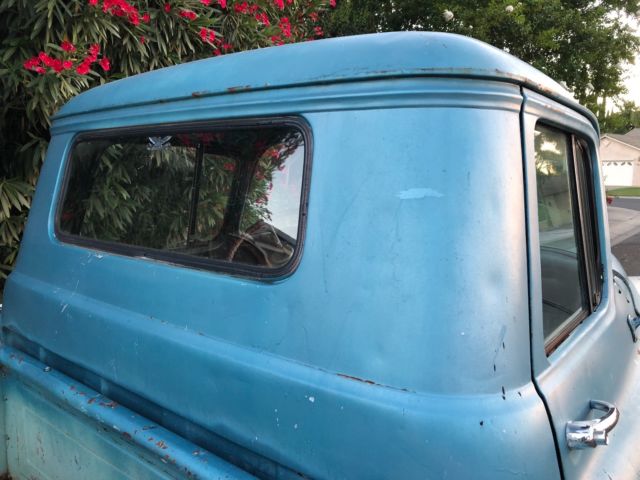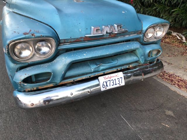1959 GMC Model 100 Pick up For Sale Selling our GMC, was told it was purchased new fromShasta LakeForestry division and used as county truck. The original green paint is visible wear blue paint is faded from the sun. Havemaintenance papers from the time we've had it and also fromthe twoowners before us. Truck runs and drives around town and property as itshould. Stays cool at 170-180 degrees on the hot days. 235 in-line 6 cylinder with original 3 speed transmission on the column40lbs oil pressure on all cylinders12 volt with newerAlternatorElectric fuel pumpHas older exhaust on it but has another exhaust from our other 57 that will bolt right up Paint is old with couple dings but still has good look. Body in nice shape for its age, only major cracking of skim coat bondo on driver side rear fender. Rest of body, floors, steps, door hinge pockets all solid. Driver side cab corner nice and passenger side has little bubbling spots of rust.Wood in bed is old/ original but still strong Frame all originalSuspension originalStock brakes, drumsfrontand rear. Pedal islittle soft but still works fine.New radial tires and rims Interior is all originalHas older tilt column with original steering wheelAll glass is goodHeater hoses disconnectedWiringis older and still works as it should Comes with extra front axle that has disc brakes California title with matching VIN on title, door jamb and frame rail |