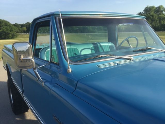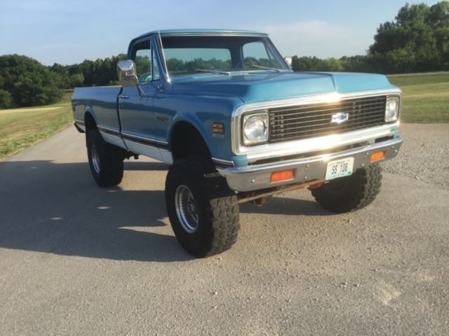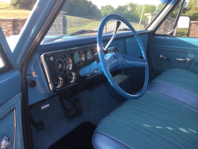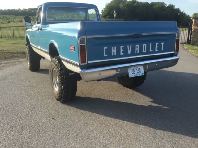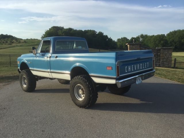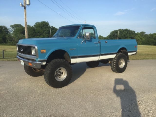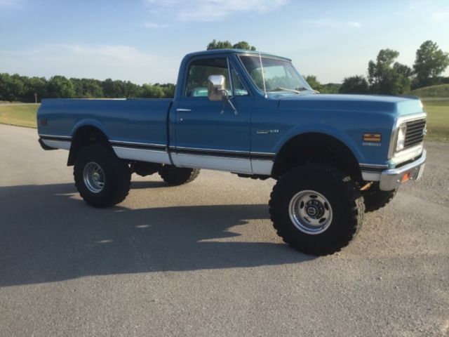 Engine: Original 350 Engine Upgraded With Edelbrock Aluminum Intake, Carb. and Valve Covers! HEI Distributor! Runs Great! Transmission: Turbo 400 Automatic! Exhaust: Dual Exhaust With Flow Masters....Sounds Awesome! Wheels: Convo Pro Style Mickey Thompson Wheels and 37 X 12.50 X 16 Super Swampers! Suspension and Brakes: Rancho Springs and Shocks! 2" Body Lift! Power Steering and Brakes Body: Blue and With White Trim! Paint is OK! Driver quality. Repainted Once with some imperfections. Straight Body All Glass is Good! Doors Open and Shut Nice! Some Rust Starting Under the Bottoms of the Doors (inside panel...molded LMCpatches included). Factory Dual Tanks! (Never Used The Extra Tank)! No Rust in Floors ( still have all original paint when I installed new carpet.! Interior: NEW INTERIOR...NICE! Nice Dash Pad! New Seat! New Carpet! New Steering wheel Nice Door Panels! Factory Deluxe Gauges with New Bezel Original AM Radio is there but working. Great running truck.Gets lots or attention! Driven locally pretty regularly. $500 Deposit due immediately. Balance due in 7 days. Must be picked up in 30 days |