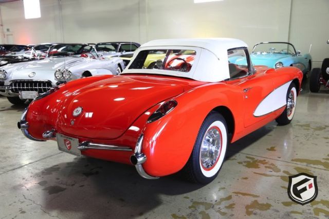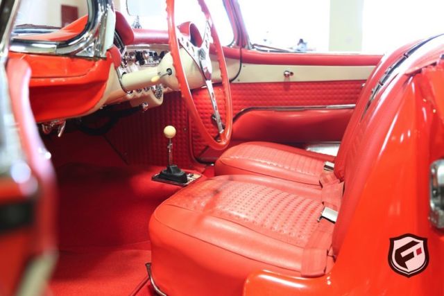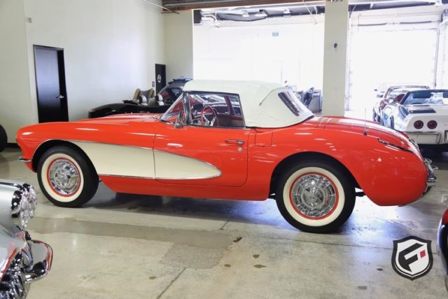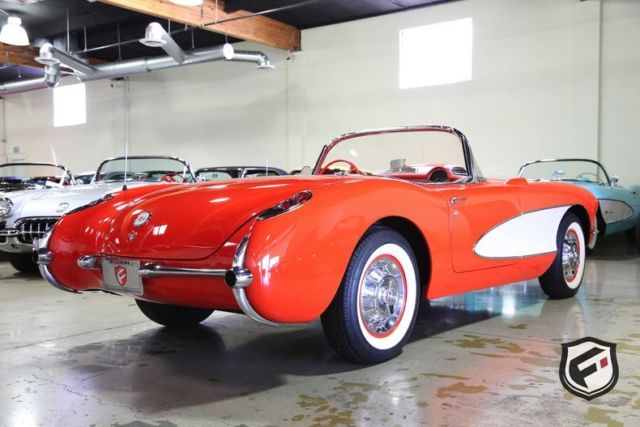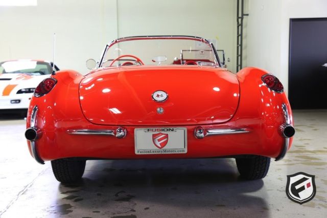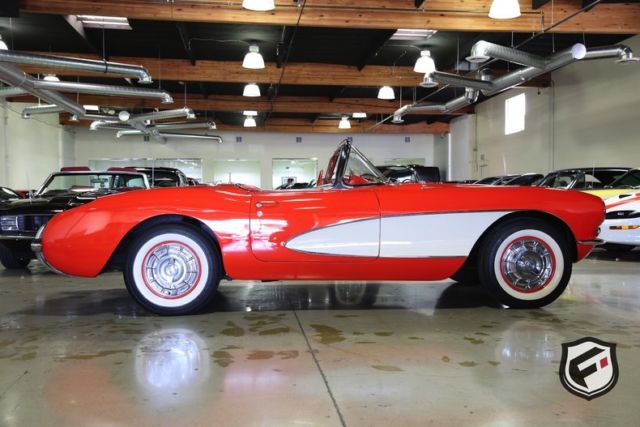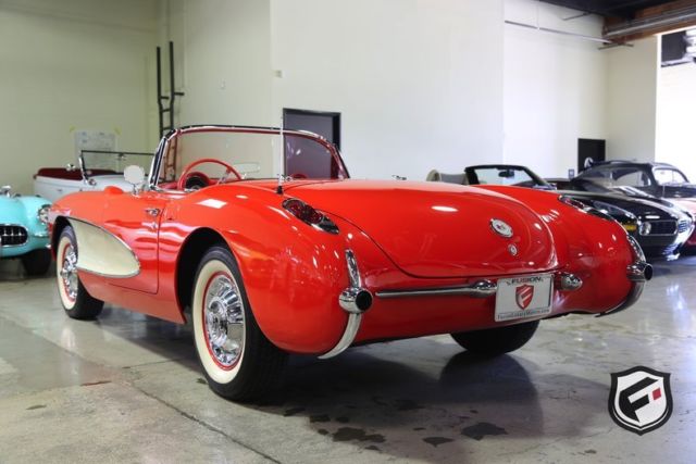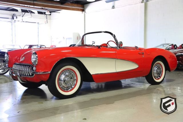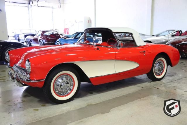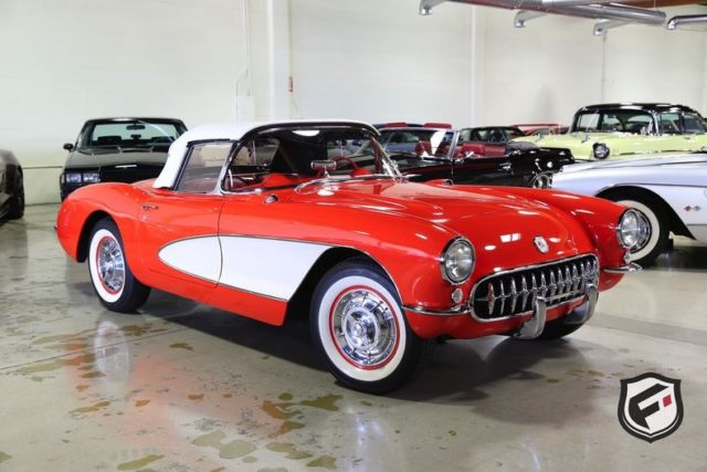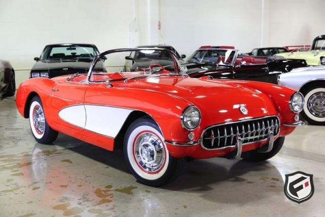 Part of the C1 generation, this 1957 Chevrolet Corvette Convertible is a stunning example of a timeless classic. It is equipped with its original EF-code 283cu. in. V8 engine, and the 4-speed manual transmission. This car has a custom AutoSound CD changer, a new Corvette AM Radio and new whitewall radial Coker tires. This Corvette was built with a power white top. The odometer reads 37,077 miles. According to the Corvette Black Book, this is just 1 of 716 Corvettes delivered in its original two-tone Venetian Red and Shoreline Beige color combination for the 1957 model year. Though the Corvette had first been released in 1953, the 1957 model marked the first time Chevrolet saw a drastic sales increase and decided once and for all to continue production. Its small block engine was actually one of the first mass-produced engines in history to reach 1 hp per cubic inch! This is a very solid and original Corvette and would be a gem in any classic collector's garage! Great lease rates and Financing also available on any of our inventory!