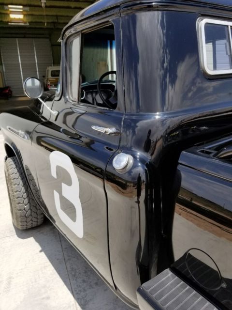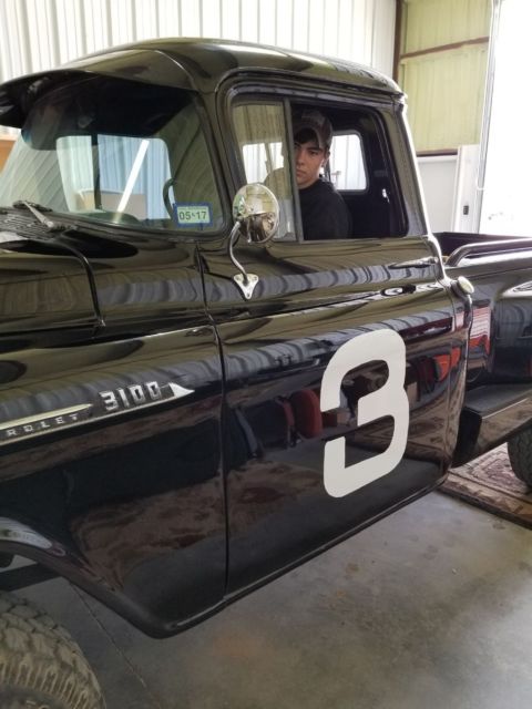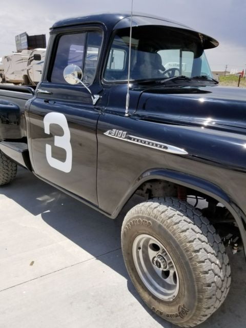 1956 chevrolet pickup truck 4x4 hybrid on 1979 0r 80 blazer chassi, purchased here on ebay 4 years ago, runs good 350 v8, automatic transmission, 4x, I've never put in 4x4 but previous seller said he ha, runs out goo, some newer part, I added ac ki, vents in dash etc aftermarket cools great, also just added 700.00 train hor, truck has later 90s bed on it for styling, I have won a president pick award at our local car sho, beat out some very nice trucks, has great eye appea, number 3 stickers on doors can be pealed off if you wish, put fuel tank in bed no smell in cab, has bondo on truck it's a 1956 truck please understand it's not a mint 56, but if you want a good running truck you can drive this is it, please no low offers I'm selling at a loss to generate some capital for another project, no zero bidders etc I reserve to end earl, for sale local, please ask any and all questions before bidding .500.00 dollar paypal deposit 24 hours remainder wire please.