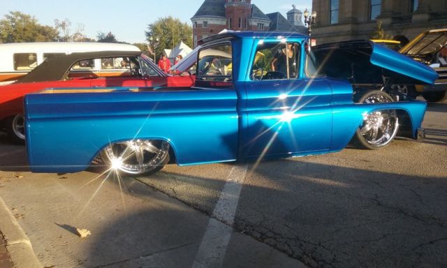 | Over the top build.1963 Chevy c10. been in 5 magazines.won sema show.Mattel made a hot wheels after the truck.Google mark barbee c10.this truck is all over the net.pics don't do it justice.high end build.on firestone air bags.350 ram jet fuel injection.all chrome.700r4 overdrive transmission.drives nice.stereo system with amps dvd and navigation.high end baseball glove stitch interior.license plate retracts into the tailgate.suicide doors. hood opens electricity to much to list.high end truck.75000.00 obo |