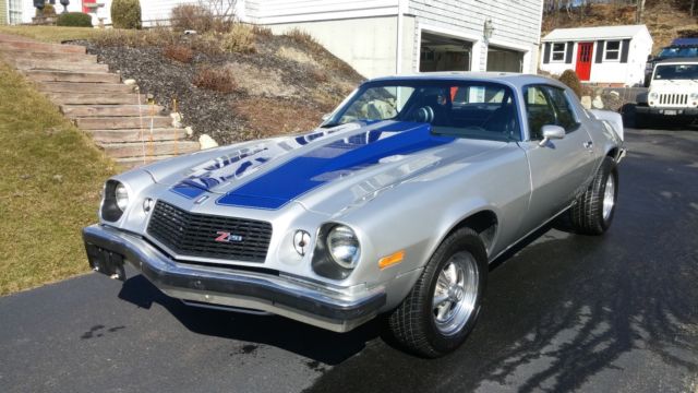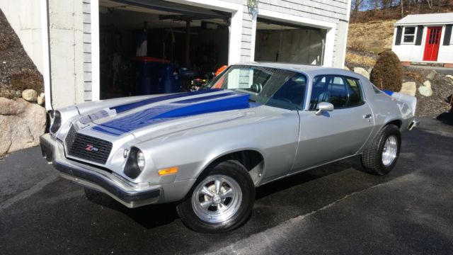1975 Z28 Camaro clone, 84K original miles. Owned by retired pilot with too many toys. Just finished complete restoration. Everything is new and too much to list in the AD. Car is ALL steel and in GREAT shape, just painted and striped (silver with blue stripes & black interior). I have all the pictures to show work in progress. Here is a partial list: · Rebuilt small block (bored 120 over) fireball cam, Edelbrock intake, polished Holly 4-barrel, MSD ignition, NOS valve covers and air clear. · Rebuilt M22 5 speed, new close-ratio Hurst shifter, new clutch/pressure plate and flywheel · Completely rewired with factory harness · Chrome headers with All new duel-exhaust · 10 bolt posi-rear-end · New leaf springs, shackles and bushings · ALL new breaks, break lines, master cylinder and emergency cable setup · All new front-end parts including front springs and disk breaks · New gas tank, sending unit and all new fuel lines · New dashboard · Rebuilt steering column · 4 new tires with less than 50 miles on them · New iPod enabled Pioneer Stereo with Pioneer speakers & remote control · New: windshield, door edge trim, door locks, door handles, weather-stripping, windshield washer pump, fluid lines, steel cowl induction insulated hood, trunk weather stripping, new Z28 emblems, glove box, new carpeting, new trunk mat and just to much more to list.... · Front and rear seats are in great condition · Car has a bolt-in roll-bar, Autogauge by Autometer Tach with shift light, 5 point seat-belts (all are easily removable to keep the all stock look). Everything works! The only unrestored parts on the car are the original bumpers and the Crager mags. Car runs and drives great.... It is a great driver! Selling because I have too many toys and not enough time to use them all. email, text or call if you have questions.... 617-388-5975 |