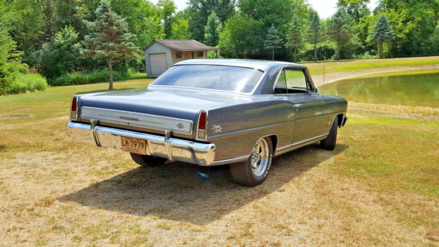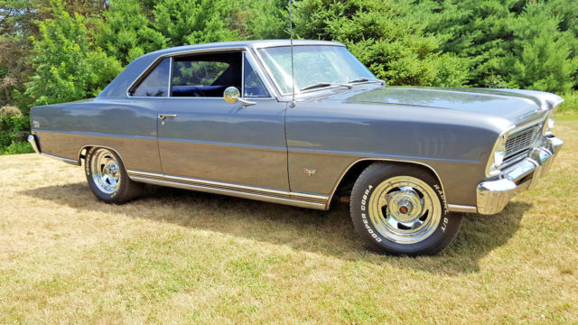 This is a true CHEVY ll, Super Sport.35,500 milesnear excellent conditionGun Metal Gray2 door coupePS, PBexcellent body lines350 HO engine 9.1 : 1, 330 hp, (google # 12496968 for specs.)700 trans.Holley 600electric fuel pump (30 gpm)3.23 : 1 ratiorear air shocksHooker Super Competition HeadersDate code correct seat beltsoriginal Protect-O-Plateowners manual P-235-60 R15 Cooper Cobra Radial G/T. tiresExtensively restored. Car is ready to go to your next show and win first place. |