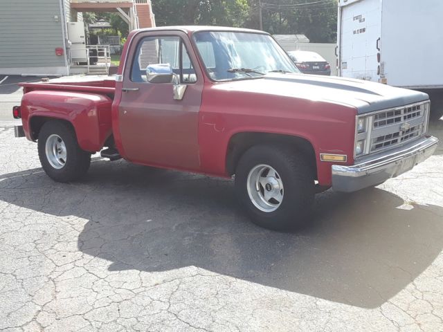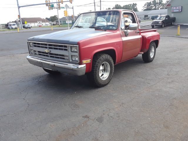 1987 step side 2wd .Previous owner did alot of work to the truck,some good,some questionable.the only rust on the truck is the rear passenger fender,drivers step, and front inner fender wells,it does come with new front inner fender wells and has a new step on passenger side,otherwise exceptionally clean chevy as far as rust goes no bondo or patches anywhere.The questionable part is that the truck was fully loade, he replaced power window doors with roll up doors,and took out the a/, compressor and lines are gone,should be easy enough to put back as nothing was hacked.Newer dual exhaust that sounds nice,steel cowl induction hood,wheels and tires,radiator,starter,hi-perf distributo, fuel pump, and was told trans was rebuilt. The truck sat for a year.the fuel pump is electric and it is connected to the dual tank switch to turn on as it only now has one tank.There is a problem somewhere as one day it will start and the next day it will not.I changed the computer (ecm) with a used one( thinking its the only thing not replaced) and it seemed to fire right up and then 2 days later same problem,so now its for the next guy to figure out.engine when running is real healthy and strong with no smoke or smells,i drove it up the street and it shifts tight and has more power than a stock truck for sure,did notice after i parked it there was a small puddle of trans fluid leak,I hate long winded ads,however im being as thourough as i can. truck is locaded in levittown pa 19057 and anyone is welcome to inspect at any time during the listing ONLY not after.Buyer is responsible for any shipping,$500 paypal dposit due in 24 hours of auction end which will be NON REFUNDABLE to be clear to eliminate non serious bidders and balance due in 1 week. super solid truck to play with............no reserve.