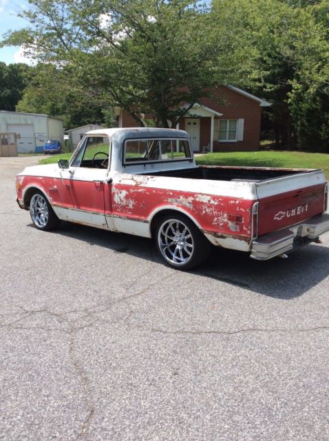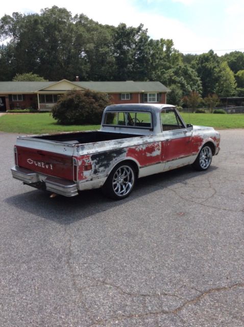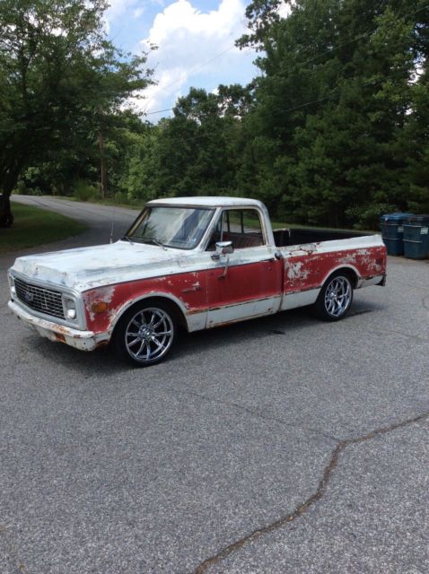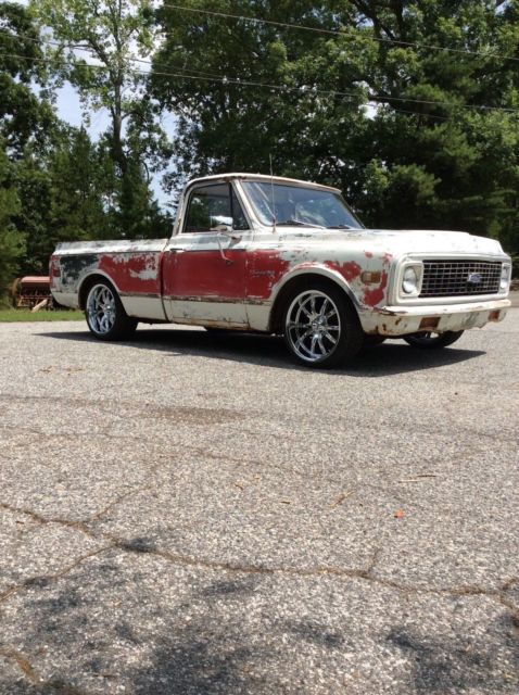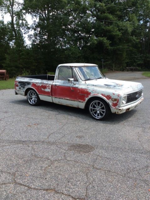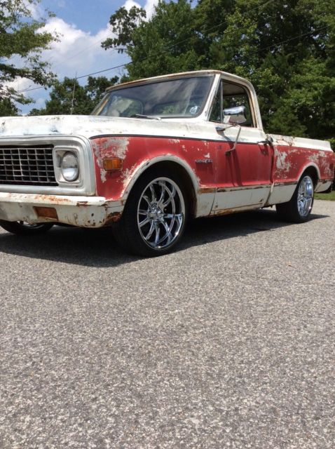 1972 Chevrolet c10 patina short bed truck that runs and drives . Truck shows awesome patina and the new chrome 20 inch riddles give it that over the top look. Truck has v8 automatic that is strong running and sounding. 350 trans shifts and works as it should, very dependable and cool truck. Truck is very solid in most places but does have some typical c10 rust. Truck is a 72 so it has 5lug wheels and front disc brakes. Hei distributor, new gas tank and sending unit. Also has new 4/6 drop lowering springs.