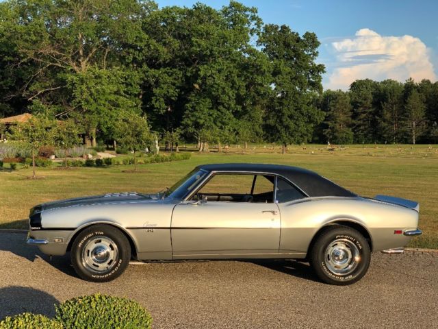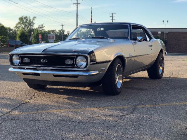 Highly optioned ALL numbers matching 1968 Camaro SS 350 originalNOT a Tribute, NOT a clone, this is the real deal, documented and appraised. -Cortez Silver-Power steering-M21 Close ratio numbers matching Muncie four speed transmission-J52 Vaccum power brakes-D90 Paint code-ZJ7 Rally wheels-L48 High output 350-Numbers matching factory 12 bolt rear axle-G31 Special HD rear springs-solid original floors-very low original miles! 60,400 Vehicle runs, drives and brakes flawlessly as it should. Has an ultra rare paint code designation. Special paint cars were identified with a special paint code on the cowl tag, with a dash "-". This car does have a few flaws as seen in the pictures. The only items missing are the original steering wheel and original valve covers. Car has always been kept covered and garage stored. With it's factory list of desired options, numbers matching, original documented and desirable color combination with black vinyl hard top, this Camaro is the pinnacle of collector Camaro's. Have many more pictures upon request. This car is for sale locally as well and may be sold at any time. Please call Rich with any questions 810-577-5268.
