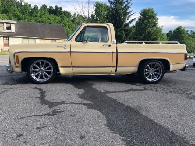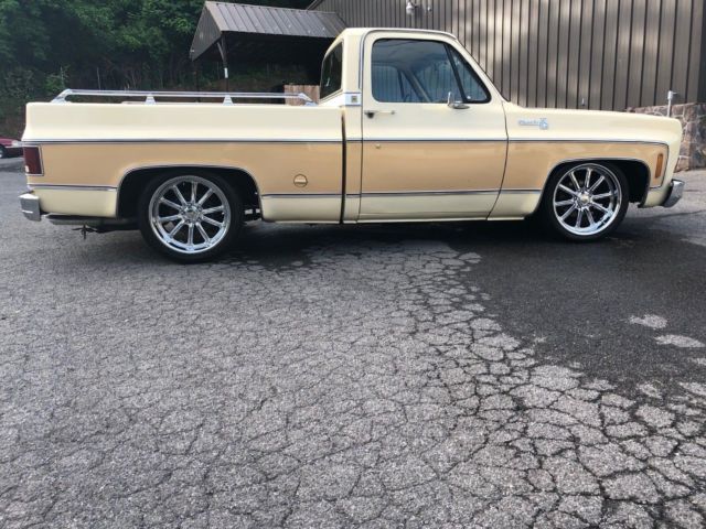 1978 Chevrolet C10 HD half ton comes equipped with a 350/350 engine trans combo, 373 rear end gear, power brakes, power windows, cruise control, and air conditioning this truck has all the bells and whistles! We installed a 5/5 DJM drop kit, new shock, new brakes and brake lines, and a new set of 20 inch American racing Rodders! On the inside it has a new dash pad, seat cover, headliner all restored interior trim. The body and paint is in killer shape for a 40 year old truck hard to find color combo with all the trim in good shape and in tact your not going to find another one like this!!!!! The truck is for sale locally i reserve the right to end auction at anytime for any questions contact me at 4239670383 i dont need help selling!