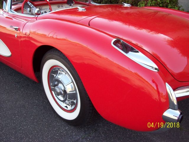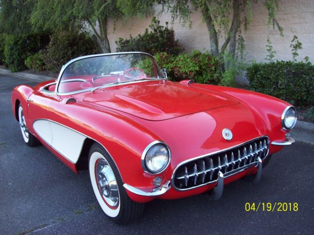 1957 Chevrolet Corvette,Venetian Red w/white cove low miles, original 283 cu. in. engine, with w/two 4 barrel carbs, solid lifters, 270 hp, 40,000 miles (believed to be actual), early car with original 3 speed trans., Factory equipped with wonder bar radio, courtesy lights, brake light, windshield washer, factory original red interior, white soft top, excellent body with original bonding strips, solid frame, original spare tire, nice chrome and stainless.Runs and drives like new. Call Charles with any questions at 828-381-7720. Please do not email for fastest response.