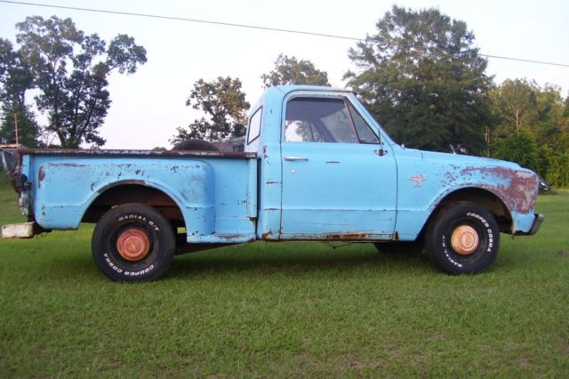 I AM SELLING MY 1967 CHEVROLET TRUCK. C-10 SHORT BED PICKUP TRUCK,STRAIGHT 6 CYLINDER ENGINE,3 SPEED ON THE COLUMN. THIS IS A FIXER UPPER BUT A GOOD STARTER TRUCK. IT WILL RUN BUT THE CARBURATOR NEEDS CLEANING,RUNS WITH NO SMOKE, TIRES ARE OLD AND CRACKED, WOOD BED IS ORIGINAL BUT HAS SOME CRACKED BOARDS DUE TO AGE 1967 . GOOD SEAT AND INTERIOR IS IN TACK (LOOKS ORGINAL), STEP BUMPER IN REAR. THE TRUCK HAS SOME RUST IN USUAL PLACES FOR THE YEAR BUT OVER ALL THE BODY IS IN GOOD CONDICTION,HAS ORGINAL WHEELS AND HUB CAPS. MUST BE TRAILERED TO GET HOME.NO RESERVE SERIOUS BIDDERS ONLY- $500 DEPOSIT IS REQUIRED WITHIN THE 48 HOURS AFTER AUCTION ENDS.On Aug-04-18 at 07:21:46 PDT, seller added the following information:THIS TRUCK IS BEING SOLD WITH BILL OF SALE ONLY, NO TITLE.