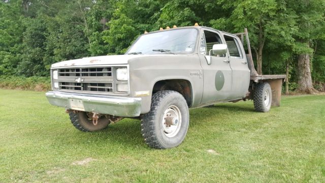 | 1986 Chevrolet K30 Crew Cab 4x4. 97,000 miles. 350 SBC with a Turbo 400 trans. Texas truck. Cab corners, rockers, frame all rust free. Frame has factory markings still visible. Doors do have some surface rust starting around inside edges but no holes (see pictures). Truck runs and drives, brakes are solid and steering is exceptionally tight. Can help ship truck if needed. Call/text with questions. four1nine6one5two4four3. |