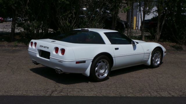 1991 Chevrolet Corvette ZR-1 Low Mile mint original car. Enthusiast owned from new, this 1991 ZR-1 Corvette is about as nice as an example you will ever find. Highly documented from new with lots of paperwork including original window sticker and Chevrolet assembly plant build sheet. This is a beautiful car that shows no wear or abuse of any kind with flawless original paint and as-new interior. Finished in code 10 Classic White Red leather interior, it is a great looking ZR-1. All Corvette ZR1 models were built as full option cars with the exception of the dual roof panel option and this particular car does have that featureas specified on the original window sticker.The previous owner was meticulous in his care and service of this car and the 24,400 miles it has traveled. Have been all in good weather and much care. He was fanatical that the car not sit in the sun and the Red leather shows no signs of any fading as is often the case with a Red leather interior. 4 new Goodyear F1 Z-Rated tireswere installed just 2200 miles ago. The car is unmodified with the exception of a Corsa Cat Back stainless steel exhaust system. That improves the sound quality of the LT-5 motor immensely. A recentfull serviceincluding oil change with mobile 1 has just been performed this Spring.ZR-1 Corvettes are some of the most interesting performance model Corvettes ever built, extremely unique from their counterparts. Recent trends show these cars to be on a slow but steady rise in value as they are being recognizedas a new collectible car that is still modern enoughto be driven and enjoyed. Look over our pictures or come to Erie to see this outstanding example of a ZR-1 Corvette.