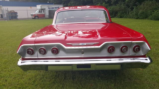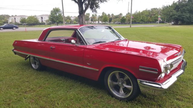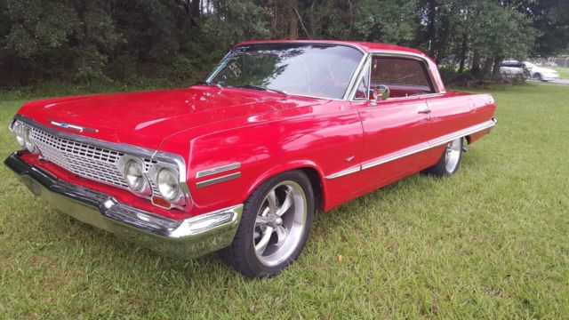 1963 CHEVROLET IMPALA12000 MILES SINCE REBUILDORIGINAL REBUILT 283 POWERPACCORVETTE VALVE COVERSALUMINUM INTAKEHOLLEY 600 CFMREBUILT POWERGLIDE TRANSMISSIONEXCELLENT PAINT AND BODYVICTORY RED BASE CLEAR PPGVERY NICE UNDERCARRIAGE AND FLOORSNEW 18" RIDLER WHEELSNEW TIRESPOWER STEERINGPOWER BRAKESALL NEW INTERIOR WITH BUCKET SEATSDUAL EXHAUSTRUNS AND DRIVES AWESOME !!!INSPECTIONS OR APPRAISERS ARE WELCOMEJOHNNY @ 904-993-5037 WITH QUESTIONS |