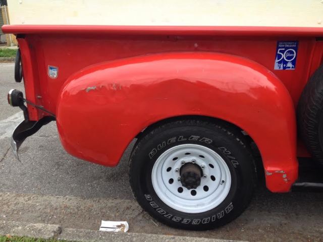 Year: 1949 Make: Chevrolet Model: 3600 p/u Miles: ~ 6500 miles since rebuild 2008 Engine: 216ci Straight 6 Electric is on 12 Volt system New radiator Transmission: Rebuilt Muncie M20/21/22 4-Speed (rock crusher) from 69 Chevelle Carb Type: rebuilt single barrel Interior: Grey Exterior: red Front Seat Belts: yes Wheels: White 16 x 7" Inch Steel wagon Tires: Less than 2,000 miles on 16" Firestones New Window regulators (both sides) New Door Latches and handles (have originals if buyer wants). New 2" MagnaFlow Exhaust system New glass in rear. New window rubber all around. Replaced old cloth wiring for up to date 18 gauge 12 volt wiring system. New cables and brake lines underneath. New tailgate New Chrome bumpers front and rear little to no rust except in cab corner driver side. OPTIONS Stock 8 bolt Rear End Leaf springs (were reshaped once back in 2010) Bench Seat (fresh vinyl recovering) Manual Steering (with 3 on the tree still possible to link to transmission) Push button floor starter heater works * brand new coil * brand new fuel filter * brand new Power master 80251 Generator/1 wire Alternator combo * Manual Brakes * upholstered vinyl interior * brand new starter * brand new distributor contact points Concerns Cab corner driver side is only real rust concern. (as shown in picture) Possibly needs new leafs or upgraded suspension. Hasn't been cranked since July 2017 Passenger door latch broken on interior. Passenger door may need to be reset as it won't stay closed. I installed new door hinges on both sides but still won't stay closed. DOES IT WORK? - Speedometer: No (replaced 2x but stops working? May need new automatic sensor type installed due to transmission change) I've used speedo apps to keep track of the mileage and speed since 2012 when I installed the new transmission. - Oil PSI Gauge: Yes - Temperature Gauge: Yes - Turn Signals: Yes - Headlights: Yes (and push button high beams) - Wipers: No (Needs new vacuum set up or something more modern.) - Horn: Yes - Brake Lights: yes - Fuel Gauge: Yes I was driving this truck as a daily driver from anywhere to 15-25 miles 2-3 times a week. Unless it was raining. I've taken her to cruisin the coast out Hwy 90 twice. We've been to Hot Rod Power Tour in Gonzales, LA a few years back as well. This truck is ready to drive anywhere at 55mph, get her started, and if speedo cable can be fixed so that you'll know how fast you're going. And I did mention that she hasn't ran since July 2017 so you'll have to get her to crank up. It's about 70% restored and original and 25% modified (tranny, 12 volt system, and wheels). It's a bed refinish, very little body work, possible original green paint job, from being show quality and worth $30,000 or more. Please no low bids!! Or your _______ (expletive) will be ignored. I'm only the 3rd owner of this truck. It was barn find from Ohio to a gentleman in Donalsonville, LA. If paying by cashier's check, I will DEFINITELY wait for check to clear before handing over the keys. |