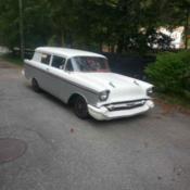 1957 Chevy 210 (with Belair trim), turquoise and ivory exterior. I bought this as a project car about a year and half ago and I've got it mechanically in pretty good shape. I have not touched the body yet other than replacing the driver's window, restoring the driver's door regulator, and putting new wheels and tires on it. All photos were taken today. Mechanically, these are the parts that are new within the last year and a half. Dual master cylinder conversion, front disc brakes, rear drums, exhaust system, gas tank (filler valve, sending unit, etc), and rebuilt carburetor. The car came without an alternator and it now has a used one on it and working. Battery, wheels, and tires are new. The car starts right up and runs well. As you can tell from the photos, this is a project car. There is rust along the rocker panels and in several other spots. A previous owner did some work on the floor pan, but it probably could use more. Most of the gauges work - speedometer (although it reads high), oil pressure, gas gauge, headlights work, radio works. Horn and turn signals need to be worked on. The original color was Harbor Blue (I believe) and the seats are also blue. The engine is a 283 that I was told was from around 1958-1964. The transmission is a TH400, probably not original to the car. It does have a small fluid leak, which I am hoping to tighten up in the next couple of weeks. Included (see last pic): Heavy duty car cover, new heater core (the one in the car is working fine but was going to replace anyway), two turquoise shoulder/lap belts and two back seat lap belts, white wall cleaner, glass setting channel kit, and the four hubcaps that came with the car when I bought it. This is really a nice project car, I just don't have the time or space for it. I got a good start on it and hope someone can carry it on to completion. |