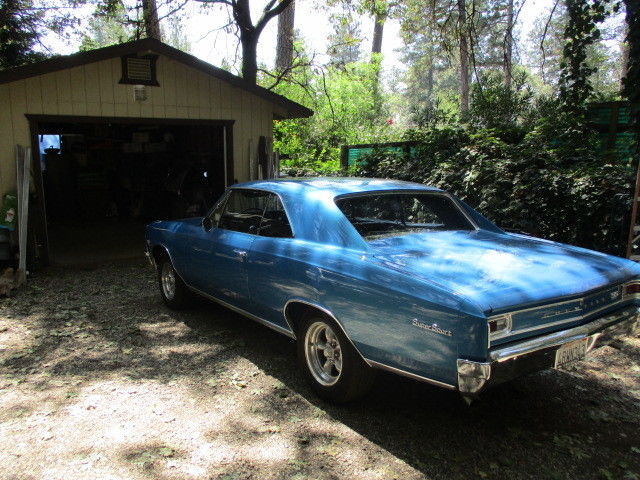 I have a 66 Chevelle ss 396 that I fully restored this year. This car was a race car for a long time until I did a frame on restoration. The power train has been completely rebuilt. The motor is a period correct 66 rebuilt by a machine shop in Livermore Ca. I just completed a rear end rebuild with bearings and 373 posi. There is no rust on this vehicle. The body was stripped and painted Marina blue with black interior. The original color was tropic turquoise. The paint was done two stage with all the door jams,trunk done also. All the interior has been done with new carpet,seat covers, door panels,arm rest and bases, headliner, dash pad and a knee knocker tach. The car is equipped with P/s, and Power brakes with a complete brake job. I have 75 pictures of the car as it was being restored. Plenty of receipts and has a clear title.The odometer shows 28k miles and should be original but I don't have any documentation. Was a race car in 1970 on. Sat in a garage for many years. The car has less than 100 miles since rebuild. It drives well like it should. Here's a chance to own a restored Chevelle at a good price. Thanks for looking. Any questions call 209 985 0695