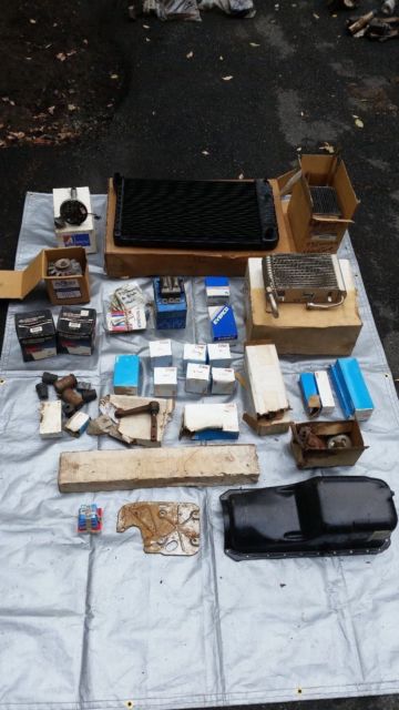1973 Camaro RS/Type LT project car with many new & used parts Originally was 350-4bbl engine auto trans, but both are long goneBody has a lot of rust, especially rear quarters and rockers. Will need repairs/replacements. Definitely a project car. The car itself is pretty much complete with the exception of the engine and transmission.Driver side window was removed many years ago during an attempt to begin working on it, but never progressed further. Window, regulator, tracks, etc. all included. Window is being held in place with straps to keep the weather out.Driver side door was taken off and is temporarily wired in place now. I misplaced the keys for it, so had to drill out the trunk lock to get it open and disconnect the steering box to be able to move it around. The car is up on blocks. I haven't tried inflating the tires in several years, so don't know if they'll hold air. Many, many new and used parts are also included in the sale, many of which are Factory NOS parts I bought back in the 80's when I was going to restore this car myself. Included are parts to convert it to 4-wheel disc brakes, as well as parts to convert it to a manual transmission. Also many duplicate parts. Here's what's included, in addition to the car itself: New Factory Parts (NOS) RS Endura Front BumperType "LT" Emblems (3) "Camaro" Fender Emblems (2) Front RS Center Bump Strip Front Spoiler Front RS Grilles (2) Front Parking Light Lenses (2) Headlight bezels (2) Auto Transmission Shifter and Knob Rear view mirror Rear window blow motor & grill Big block oil pan Windage tray (not sure if SB or BB) Rear package shelf speaker grills (2) Sun visor mounts (2) Flywheel - small block Underhood Insulation w/clips Rear valance panel (between trunk lid and rear window) Side door window felts & chrome trims - some water damage Door Gaskets (2) Door Frame Gaskets (2) Ignition Switch Headlight Switch Turn Signal Switch Ignition lock w/keys Oil Pressure Switch Water Temperature Sender Neutral Safety Switch Back-up light switch (stick shift) New Aftermarket Heli-core spark plug wires Radiator Heater Core A/C Evaporator A/C Expansion Valve HEI Distributor Alternator Headlights U/L Control arm bushings (8 total) U/L Ball joints (4 total) Center link Idler arm I/O tie rod ends (4 total) I/O front wheel bearings and seals (both sides) Anti-sway bar links & bushings Small Block Motor Mounts Oil Pump w/pickup Used Factory Extra set of tail light lenses (4) Shifter, floor pedals, and clutch linkage to convert to manual transmission Calipers, rotors, and backing plates to convert to rear disc brakes Motors, regulators, wiring and console switch to convert to power windows Small block valve covers - no PCV or oil fill holes Front & rear window chrome trim Rear window blower motor wiring harness, with dash switch Front RS grilles (extra set) Used Aftermarket Clutch and flywheel Small block bellhousing Not pictured but also included: Used Small Block HEI Distributors (2) Small Block Hi Capacity Fuel Pumps (2) Accel Coil Accel #20100T Distributor with wires Turbo 350 Transmission Oil Pan w/built in cooler 12 bolt rear end cover More parts included; I just can't remember them all. Great opportunity as a restoration project. Buyer agrees to all parts AS IS; no guarantees made. $100 Deposit due through PayPal within 24 hours of auction close. Deposit non-refundable. Pickup within 14 days of close of auction. Full payment due at pickup. Cash or certified check only. |