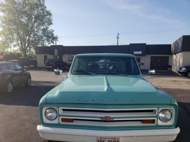 | 67 c20 pickup truck is in great shape. Power brakes, power steering, starts and runs great. The bed is in good shape needs to be refinished. Bulldog name will be removed or replaced with the name Bullet, may leave some scuff marks on the paint. All other graphics will remain. |