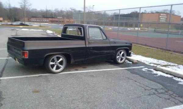 1987 CHEVY R10 SHORTBED 2WD PICKUP Video:https://youtu.be/6I47xte89E8 350, MANUAL 3 SPEED W/OVERDRIVE. RUNS GOOD RATROD STYLE, FUN WEEKEND CRUSIER X PIPE EXHAUST W/ FLOWMASTERSNEW HOLLY CARBELECTRIC FANSNEW GAS TANK, STRAPS, AND SENDER **DRIVER SIDE FLOOR, TAILGATE, AND CAB CORNERS HAVE SOME RUST. REPLACEMENT FLOOR PAN WILL BE INCLUDED. |