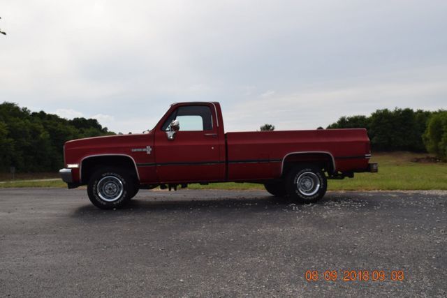 COMING SOON TO CLASSIC 405 MOTORS 1986 CHEVROLET LONG WHEEL BASE 4X4 5.0 V-8 GAS ENGINE AUTOMATIC TRANSMISSION FACTORY AIR CONDITIONING POWER STEERING AND BRAKES FACTORY RALLY WHEELS, IT HAS A NEAR NEW SET OF GOODYEAR WRANGLER TIRES ON IT. IT IS ALL ORIGINAL, ORIGINAL PAINT, ORIGINAL ENGINE AND DRIVETRAIN. IT HAS "VERY LITTLE RUST IN THE CAB CORNERS, THE BED FLOOR HAS NO RUST, THE ROCKER PANELS HAVE NO RUST, AND VERY FEW SCRATCHES, THE FLOOR BOARD HAS NO RUST,... THE CAB OR COWL HAVE NO RUST." THE DASH IS CRACKED AS WITH ABOUT ALL THE TRUCKS OF THIS YEAR MODEL. THE BED SIDES DO HAVE RUST IN THEM. THE PAINT IS WEAK FROM THE SUN. THE OLD TRUCK RUNS AND SHIFTS GREAT, THE 4 WHEEL DRIVE WORKS PERFECTLY, THE AIR IS ALL THERE, BUT ISN'T BLOWING COLD. (POSSIBLY JUST GAS IT UP, IT HAS BEEN SITTING IN THE SHED FOR YEARS, BUT OCCASIONALLY STARTED AND DRIVEN A MILE OR TWO. THIS TRUCK IS STRAIGHT! IT HAS NEVER BEEN USED OFF THE ROAD OR TWISTED IN ANYWAY... IT'S STANCE IS PERFECT, IT SITS LEVEL AND STRAIGHT.THIS TRUCK IS AS GOOD AS I HAVE EVER SEEN. IT HAS THE RIGHT LOOK! WOULD BE THE PERFECT CANIDATE FOR A RESTORATION, IT HAS NEVER BEEN TAMPERED WITH OR ALTERED IN ANYWAY. Condition: Used Year: 1986 VIN (Vehicle Identification Number): 1GCEK14H1GF347608 Mileage: 121,000 Transmission: Automatic Make: Chevrolet Body Type: Standard Cab Pickup Model: C/K Pickup 1500 Trim: 4X4 Vehicle Title: Clear Engine: 5.0 V-8 GAS Options: 4-Wheel Drive Drive Type: 4WD Fuel Type: Gasoline Exterior Color: Red Interior Color: Red Drive Side: Left-hand drive Number of Cylinders: 8 405-785-4216 THANKS RUSS