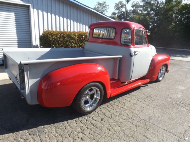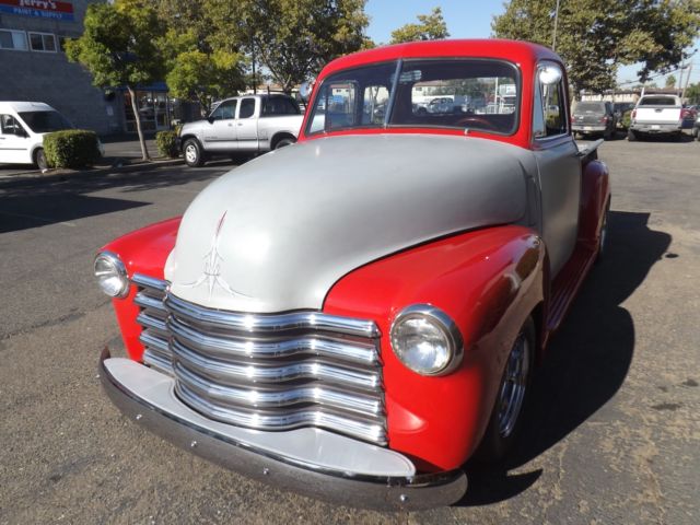 | 1949 Chevy 3100, lowered MUSTANG FRONT SUSPESION UP FRONT WITH POWER DISC BRAKES AND POWER STERRING. 10 bolt rear end, riding on super glide rear springs, Column shift, Southern Califorina Truck, Has 1953 Chevy pu doors with all new chrome on the inside, 350 chevy motor with 4BB AND HEADERS, MILD CAM, 350 auto trans. Chrome hood hinges, this truck sits right, looks right, Great Driver |