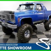 This 1978 Chevrolet K-10 Scottsdale 4x4 is everything you could want in a custom truck... and a hydraulic tilt bed! So you can look over all the details of this lifted and fully coordinated custom build, but you already know this is the baddest truck for the money out there right now. The investments in this Chevy went both for a cool attitude and added ability. Because while the bright blue paint looks nice, the colors that people will really complement you on is light blue and pink â€" the coloring of the pinstripes. These artful touches run the length of the truck, are stylized elements around the cab and tailgate, and it even coordinates with Chevy's famous Heartbeat motto on the sides of the bed. This is such a complete custom pinstriping package, that it's even on the removable headlight covers. While the billet grille and upgraded rocker panels add some nice shine, your favorite bright elements are also what make this such a tough truck. This includes the brush guard with integrated lights, 15-inch wheels with Super Swamper tires, tubular step rails, and diamond plate rear bumper. More than just mean, this is a true workhorse thanks to liner paint in the bed, and a hydraulic lift for the tilt bed. Are you ready to impress plenty of people at the car and truck shows? Inside this is exactly how you want a truck like this to be. It's a clean setup with exterior-matching blue on the doors, handles, and lower dash. A wood-like appearance on the dash gives this custom a nice look. But more than just look good, it's also is built correctly. That's why the durable vinyl bench seat has comfortable cloth inserts for where you sit. The full gauge panel is upgraded with an auxiliary readout trio and a large Sunpro tach on the dash. Plus, with the AM/FM/CD stereo, sunroof, and sliding rear window, this is the perfect pickup to crank up the tunes and let the wind whip through the cab. One look in the engine bay, and you know there was a ton spent on the presentation alone. The brake booster, master cylinder, steering rod, and much more look great as the exterior-matching blue radiate from within the engine bay. This full color coordination with the interior and exterior lets you know this is a thoughtful custom build. Plus, the 350 cubic-inch V8 that has been upgraded for extra power. The headers added even more power as they contribute to the rumble of the dual exhaust. As you look at the undercarriage photos, you see more of this great color matching as the shackles, transmission, two-speed transfer case, hubs, shocks, and much more â€" it really makes this a full custom build. While it's almost too pretty to take out into nature, the beefy four-speed manual transmission, dual fuel tanks, power steering, front disc brakes, and lifted 4x4 stance means this is also one of the most capable off-roaders around. Complete with owner's manual, this is the perfect combination of real ability mixed and monster truck showmanship. It's a terrific custom truck that's available right now at quite a nice price. Call now!
