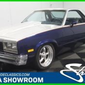 It's official, 1980s El Caminos are worthy of collector status. This 1985 Chevrolet El Camino was deemed worthy enough to have a fairly comprehensive makeover, it remains one of the nicest truck/cars we've seen in a long time. It remains affordable, but the look screams expensive! Thanks to handsome two-tone paint, this El Camino looks like you spent a fortune on the upgrade. Blue and silver are a classic combination that works particularly well on the Elky's bodywork, enhancing the length of the body and highlighting the car's unique features. Lots of time clearly went into the paint job, with bodywork that's shiny and free of ripples, and getting anything built in the mid-80s to fit together this well takes dedication and patience. Thanks to modern urethane paint and an orange pinstripe separating the colors, it looks like a million bucks and aside from some cracking on the tailgate, it remains quite nice overall. There's also a cowl induction hood and a rear roll pan to give it a bit for a custom look, and combined with the stance, it has a pro-touring look. Most of the chrome and stainless trim remains in place, although its' been de-badged, and the band of bright trim surrounding the bed remains in excellent condition. And speaking of the bed, it has a spray-in bedliner so you can still put this one to work on weekends if that's your intention. The mostly original interior is in good shape, and it includes a luxurious-looking bench seat and custom billet steering wheel. The SS instrument panel should look familiar to anyone who drove a rear-wheel-drive GM product in the '80s, but it's in remarkably good condition following the build, with a seamless dash pad and clear markings on the gauges. Blue carpets and matching door panels with neatly done speaker enclosures add to the OEM feeling inside, and you'll note that this El Camino is heavily optioned with power windows and locks, A/C, cruise control, and a tilt steering column. The original radio was yanked in favor of a modern AM/FM/CD head unit in the dash and a set of subwoofers behind the seat. You'll be pleasantly surprised by how much room there is inside and how bright and airy it feels, despite the close-coupled body and big bed out back. This is a car that you could easily drive cross-country without feeling like it beat you up. The engine is a 305 cubic inch Chevy V8 topped by an Edelbrock intake manifold and 4-barrel carburetor and augmented with dual exhaust. Most of the engine bay looks fairly stock, but there's a bit more power on tap today than back in 1985. An open-element air cleaner and finned valve covers add some interest to the all-business engine bay, which uses mostly OEM components for reliability and easy service. A 3-speed automatic overdrive transmission means this El Camino is an easy highway cruiser, and it spins the original rear end, which has highway-friendly gears inside. A custom exhaust system splits into two pipes for a great sound, and that awesome stance comes from a set of 2-inch drop spindles up front. Flashy Boyd Coddington wheels wear 245/45/17 front and 275/40/17 rear performance radials. Someone invested quite a bit of time and effort to get this El Camino looking this good, and the results are certainly worth the asking price. El Caminos remain popular year after year and this one is proof that you don't need to spend a fortune to have a cool car. Call today!