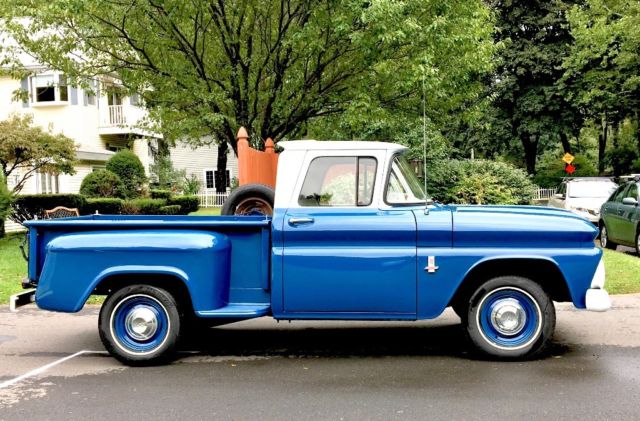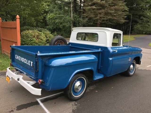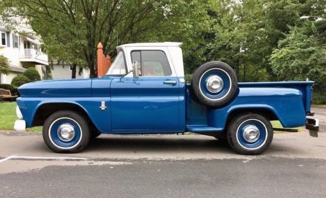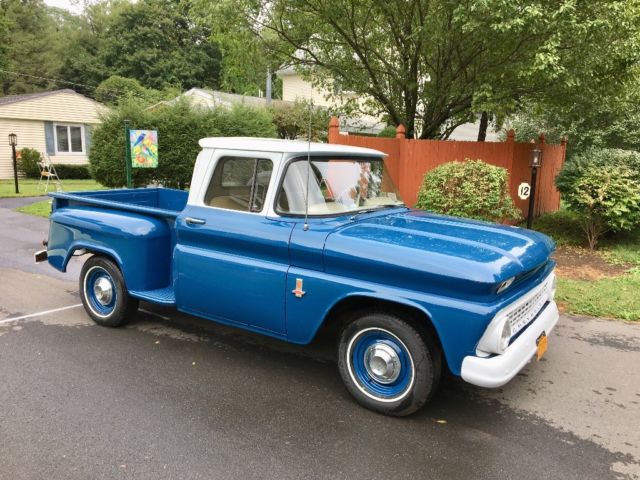 This is a fully running, beautiful specimen, 1963 Chevy C10 White on Blue, stepside pickup. It is fully licensed and Inspected in NYS.Note the 'Forward Look' design of cab pillars, fenders and grille. Also, the expansive 'Wrap Around' windshield this was the last year for these. . And of course the windsweep cab roof flares. It all says Go!' These 60-65 Chevys were known for gentle ride due to extra coil springs. I have thoroughly enjoyed this vehicle. It holds the road well, has gentle suspension, and the view from the 1950's style wrap around windshield is exhilarating. It spent its life in Tennessee until I shipped it here 3 years ago. Frame is very dry. There were some metal repairs to doors as these years had a water drainage issue. It has a 3-Speed 'Three on the Tree' Manual column shifter that is fun to use and works fine.Interior: This is a largely original, gently worn 1960's Gold interior with white accents.The engine is a 6 Cylinder and runs fine with excellent power. It actually is an early 70's motor with more power.I have driven this on two hour trips with no difficulty.Tires: All New.Mileage is unknown. Please call me or message me with any and all questions. I want buyer to be very satisfied. Vehicle can be seen near Albany, NY. Call 518-434-4016.Sincerely-Ron A On Sep-17-18 at 10:40:38 PDT, seller added the following information: Additional Information. Please Read: |