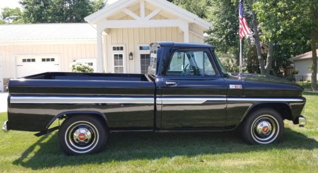 1965 Black Chevy Shortbed Fleetside Pickup. Purchased from a museum in Pennsylvania. Immaculate undercarriage, interior and body. All original parts with factory air. Stored in heated/cooled garage. Everything works as it should.